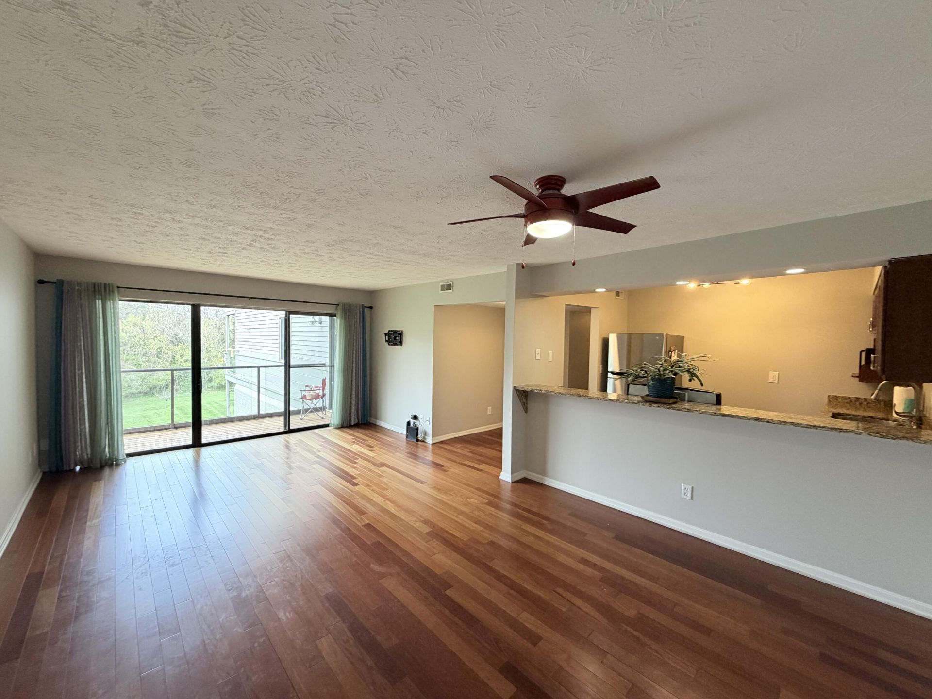 Welcome to 112 Winding Way Unit E. Highly sought after 1 bed / 1 bathroom no-step unit in The Bluffs. Updated kitchen with granite countertops, updated bathroom with tile shower, open floor plan, large rear deck overlooking private green space. Covered parking space number 26. Community includes swimming pool and fitness center. Nothing to do, but move right in.